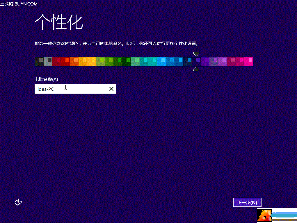 1. 系统将提示您选择背景色。如果是全新安装,而不是升级的话,系统还会要求您输入计算机名称。(默认idea PC)