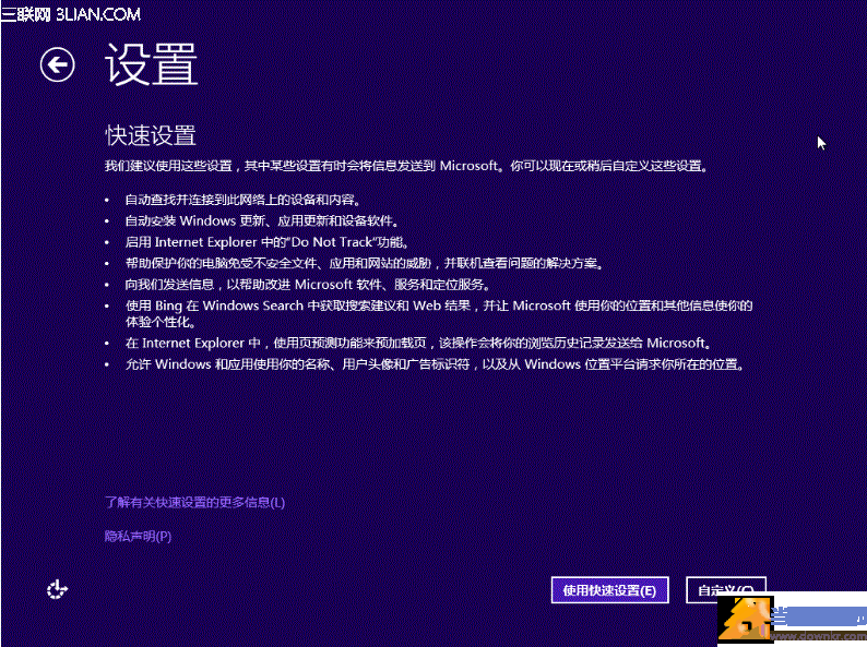 2. 建议用户使用快速设置,点击使用快速设置后直接跳到向导的“登录”步骤,也可以选择“自定义”按钮分别验证这些设置。