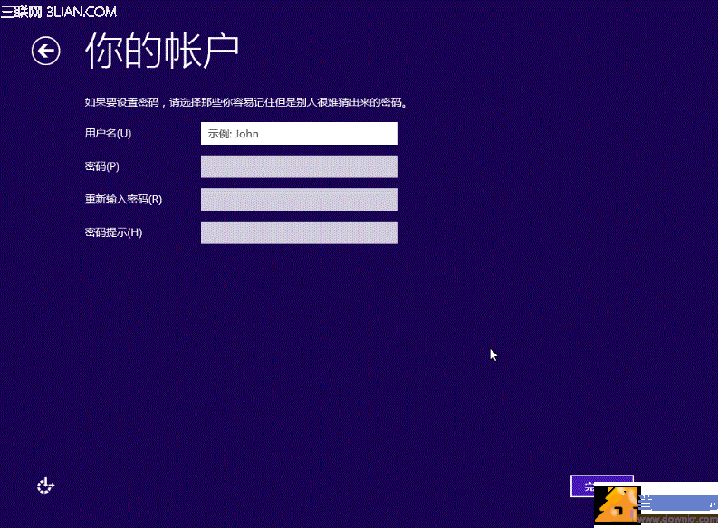 至此,账户设置完毕,点击完成等待系统自动加载直到进入桌面。