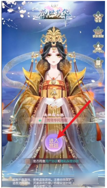 首先打开手机上的游戏,点击进入宫廷;