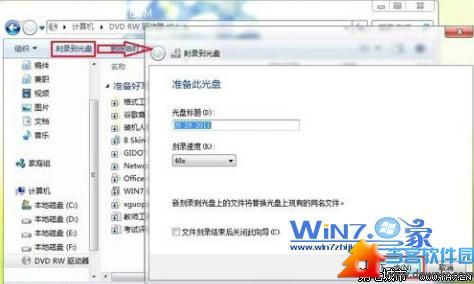 2、单击“刻录到光盘”按钮,启动“刻录到光盘”向导,进入“准备此光盘”设置页面,设置好光盘标题和刻录速度之后,单击“下一步”按钮,Windows7自动完成光盘的刻录。