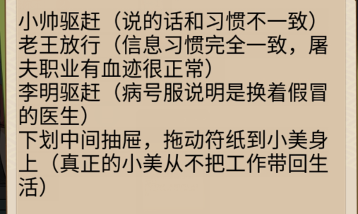 2、老王放行(信息习惯完全一致,屠夫职业有血迹很正常)