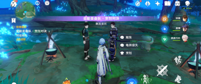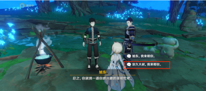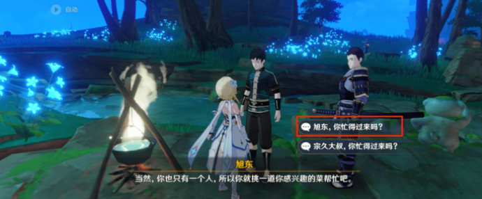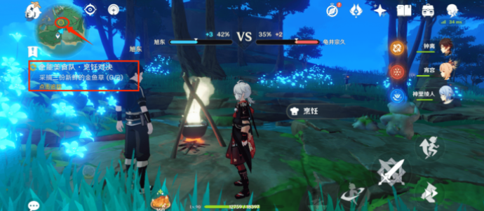 原神双人餐行成就怎么解锁 1、刷到全能美食队·烹饪对决任务,来到镇守之家下方的锚点 2、过去与旭东对话 3、第一次我们选择第一项,【旭东,我来帮你】。 4、靠近锅,帮助旭东选择调大火力。 5、然后与旭东对话,采集3份金鱼草 6、与旭东对话,交付新鲜的金鱼草 7、第一次任务完成 【全能美食队·烹饪对决第二次】 1、来到镇守之森下方的传送锚点 2、过去与旭东对话 3、选择宗久大叔,我来帮你 4、帮助宗久大叔调小火力,与宗久大叔对话。 5、然后我们去后面的门庄上面拾取新鲜的鸟蛋(建议带飞的或者踮脚的) 6、与龟井宗久对话,交付材料。 7、对完话即可获得成就【双人餐行】 |