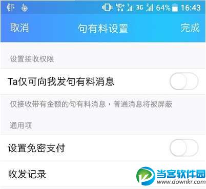 qq句有料怎么开启?qq句有料设置方法教程。QQ句有料是手机QQ最新推出的一个新的功能,对方设置句有料消息后,必须转钱才可以发送,那么qq句有料怎么开启?qq句有料怎么设置呢?下面一起来看看。 qq句有料设置方法教程 首先将手机QQ跟新到最新版本7.1.5下载安装好后,登陆在好友聊天窗口点击“聊天设置”设置中找到句有料开启即可 如果你想和某好友发消息,而对方设置了“句有料”功能后,你就必须转钱才可以。 快跟你们身边的土豪朋友们聊起来吧!是个非常有趣的功能哦。 以上就是当客小编的分享‘手机qq句有料怎么设置 qq句有料设置方法一览’的全部内容了,希望能够帮助到大家,更多精彩软件资讯请继续关注当客下载站。 |