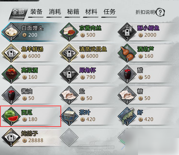 童子尿是从小孩那里取得的,玩家需求在京城的客栈卖食物的当地买一个西瓜,价格是180。