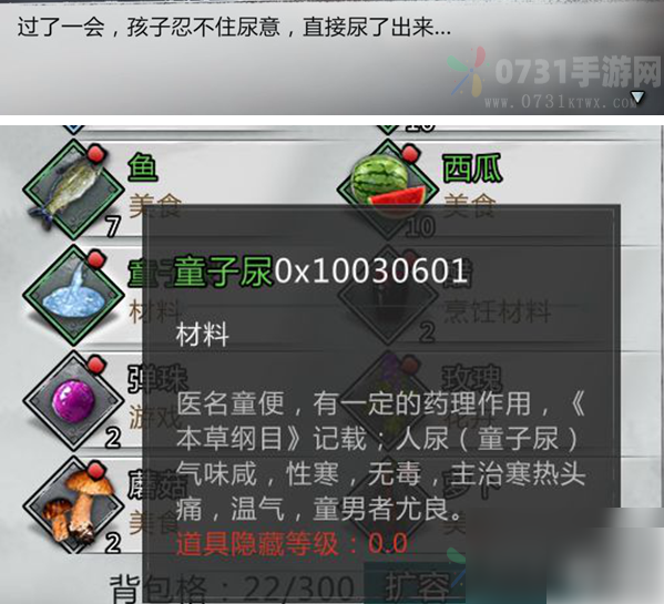 等小孩取得西瓜,吃了西瓜之后就会尿尿,玩家就能够取得童子尿了。