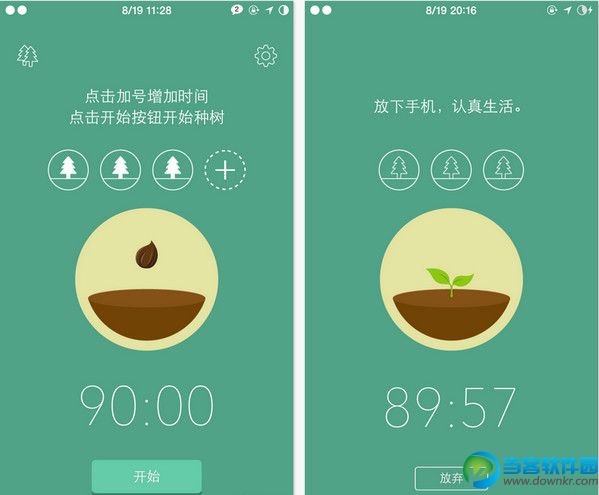 Forest是一款非常热门的小清新森林软件,这款软件能够让你回归自然,回归纯与真,让你在专心工作的同时能够暂时远离手机,拒当低头族,很多小伙伴还不知道forest app怎么用?forest app怎么调时间?下面小编就为你们介绍下。 forest app怎么用? 首先我们先下载“告别低头族forest“软件之后登陆这款APP接着在你需要专心学习或者工作的时候,点击”开始“按钮,用种子种植一棵树,全神贯注做自己的事情之后在种植的过程中不能滑动手机,否则种子就会枯萎而死,长不成一棵大树 forest app怎么调整时间? 拖动画圆圈的部分以调整时间长度 1·时间小于25分钟种的是灌木,超过25分钟才会种的是树 2·南瓜等灌木只可以在25分钟内种植,所以超过25分钟,选项中就不会有灌木的树种可选了 3.120分钟会种出四个阶段的树,也就是说,暂时不能种四棵一样的树 以上就是forest app的全部内容,了解更多资讯,请关注当客下载站! |