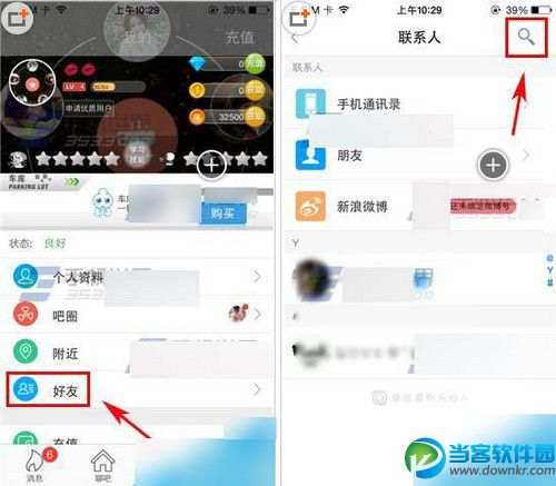 1)打开派派进入应用后点击导航栏【我的】,接着点击【好友】。在联系人页面点击右上角【搜索】图标。(如下图)