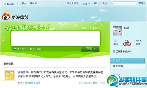 用户在登录新浪微博后,在首页右侧导航栏中,点击头像下方的“粉丝”链接。