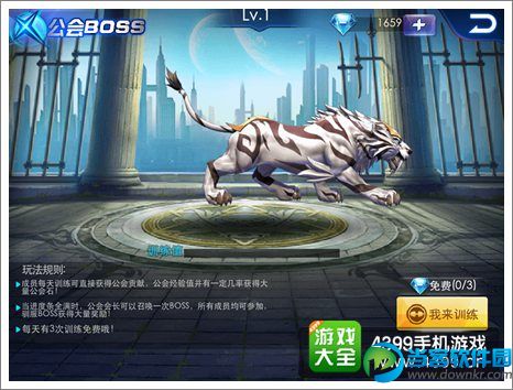 2.当BOSS的训练值进度条全满时,公会会长可以召唤一次BOSS,所有成员均可参加,驯服BOSS可以获得大量奖励。