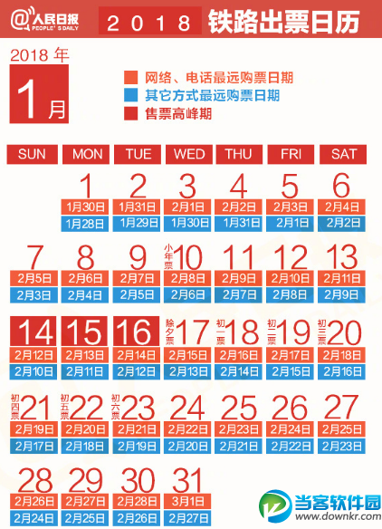 2018年春运首日火车票今天零时开售,旅客可以通过网络、电话预定2月1日(腊月十六)的火车票。2018年春运从2月1日至3月12日,共计40天,需要提醒旅客:网络、电话订票预售期为30天,车站窗口、代售点和自动售票机预售期为28天,除夕车票最早1月17日开抢。 2018春运火车票开售时间一览: 2018年春运时间总共40天,即春节的前15天以及春节后的25天。从日历上看,年前2月1日就是春运首日,在1月3日可通过网络、电话订购这一天的火车票。而除夕(2月15日)当天的火车票,1月17日就可购买。还有几个重要的抢票节点,1月16日可以通过网络、电话购买2018年情人节当天(2月14日)的火车票,1月18日可通过网络、电话购买大年初一(2月16日)的火车票,1月19日可购买大年初二(2月17日)“姑爷节”的火车票,当天,不少人都会选择回娘家,预计该日也会迎来一个出行小高峰。 依据本市铁路出行特点,预计腊月二十三开始客流明显激增,1月10日开售腊月二十三(2月8日)车票,购票高峰期正式开始。年前最难抢的回家车票将出现在腊月二十七到二十九,也是购票最火的日子,所谓一票难求就是在这个阶段出现,相对应的购票时段为1月14日到1月16日。节后购票高峰期出现在大年初五(2月20日)到大年初六(2月21日),可在1月22日及23日这两天通过网络、电话订票。 放票时间点从16个调整为21个,即8:00至18:00期间,每个整点和半点均有新票起售,同时C、D、G字头列车不再单独起售,起售时间与车站保持一致。 |