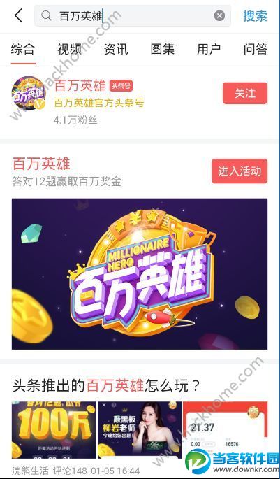 今日头条百万英雄怎么玩?今日头条百万英雄答题入口地址~很多朋友都问我,说最近出来的答题游戏怎么玩,很多朋友们都在答题赢钱,答对12题就可以获取百万奖金了,大奖正在等着你~快来当客下载站看看吧。