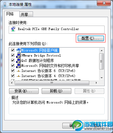 然后在网络连接属性页面中选择“配置”
