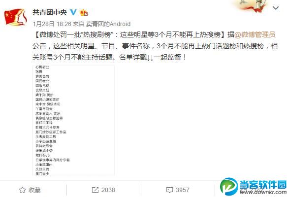 随后共青团中央官方账号更是公布了一批热搜名单禁令内容如下: