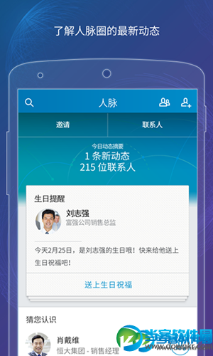 1.和飞信 和飞信体验版是一款非常好用的社交软件,软件功能强大,可以随时群组聊天,视频聊天,让你生活沟通更便捷,有需要的快来下载吧! 2.云之家 云之家安卓版是一款企业社交网络服务软件,云之家通过云技术和社交网络,为企业打造温馨和谐的内部社交化工作空间,集合了微博微信等诸多实用功能,是企业内沟通的好工具,需要的下载吧! 3.linkedin LinkedIn 领英安卓客户端全新设计正式上线!为您打造的新版安卓客户端,让建立联系拓展人脉变得更容易。无论是与专业人士互动,还是获取业界前沿资讯,一切都可直接在首页进行。新版导航也将根据您的 LinkedIn 使用习惯,为您提供更个性化的体验。 4.Trello日程管理 Trello日程管理最新版上的工作都围绕“木板(board)”进行,同一小组的用户可以在这里创建待办事项列表(to do list)、创建任务,并分配给同事,当同事完成工作后可以把任务状态标记为完成,类似于producteev。 5.腾讯企业微信 企业微信app是一款专为企业打造的聊天沟通类移动应用,通过微信企业版app可随时随地查看办公资讯,沟通聊天简单方便,而且还可以拨打免费电话,欢迎下载体验。 以上就是当客小编的分享的全部内容了,希望能够帮助到大家,更多精彩软件资讯请继续关注当客下载站。 |