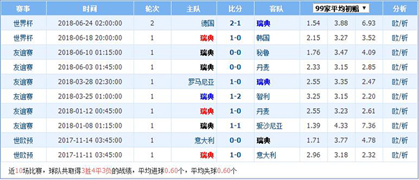 两支球队在过去历史交手当中有过9场比赛,其中墨西哥以2胜3平4负处于不利地位,进球数5个,失球数8个,两支球队在世界杯交手过一场,那个时候墨西哥3-0打败了瑞典队,但考虑到历史对抗时间比较久远,基本上没有多大的参考价值。