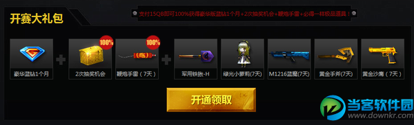 支付15QB即可100%获得豪华版蓝钻1个月+2次抽奖机会+鞭炮手雷+必得一样极品道具!