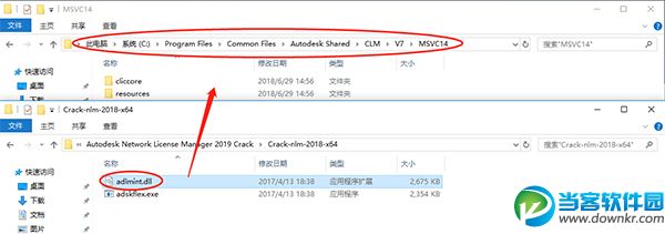 8、再将破解文件”adlmint.dll“复制替换到“C:\Program Files\Common Files\Autodesk Shared\CLM\V7\MSVC14”提示文件重复直接覆盖即可