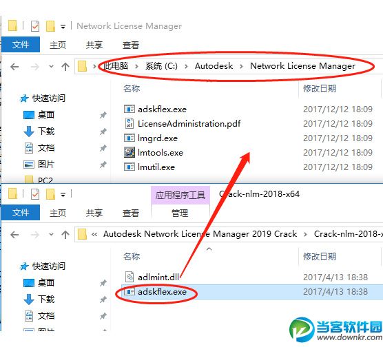 7、然后我们将打包资源里的破解文件夹“Crack-nlm-2018-xx(根据您安装的版本进行选择32或64)”打开找到里面的adskflex.exe“复制到“C:\Autodesk\Network License Manager”提示文件重复直接覆盖即可