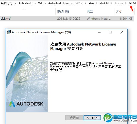 6、随后我们找到“C:\Autodesk\WI\Autodesk Inventor 2019\xx(根据您安装的版本进行选择32或64)\zh-CN\Tools\NLM”运行并按照提示安装
