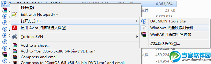 首先找到一个ISO镜像文件,如果没有关联第三方软件打开的情况下,双击ISO文件就会弹出刻录机选项了。如果第三方软件关联了ISO,那就右键->打开方式->windows 光盘映像刻录机也会打开刻录机选择。