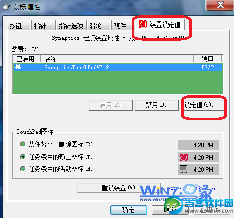 2、然后在打开的界面中切换到“装置设定值”选项卡,点击下方的“设定值”按钮;