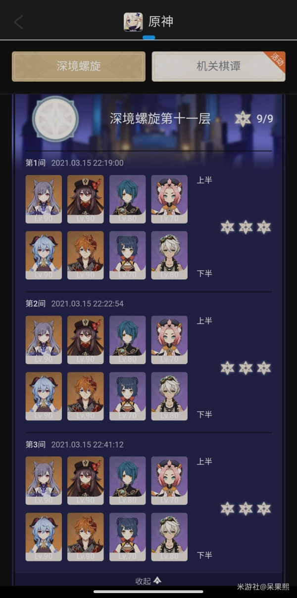原神手游中很多小伙伴不知道阵容搭配及通关技巧,也不清楚原神手游深渊满星玩法是什么,今天小编就带着大家了解一下原神手游深渊满星攻略; 原神手游深渊满星阵容攻略;一队:甘雨公子香菱班尼特 二队:刻晴胡桃行秋猫娘 刻晴一命,香菱五命,行秋满命,班尼特一命,其他都是零命,班尼特拿天空剑,其他都是四星武器 11-1:上下层不用我说,大家都知道怎么打满星的 11-2:上半层先打第一个火箭QQ人,其次清完斧头QQ人,然后逆时针清理雷火箭QQ人,最后是火棍和草盾,下半层甘雨嘲讽加香菱打火机可以清理完所有人 11-3:上半层,我是提前攒好能量,然后核爆雷锤,第二波先伤害拉满,胡桃+行秋雨剑五秒左右清理掉水胖子,然后清理岩法师(保证他开不了盾),剩下雷锤直接猫娘破盾,胡桃伤害继续拉满 下半层,有一分半时间就够了,依旧是甘雨+香菱打火机打反应 12-1:上半层和下半层都是一开始核爆拉满直接输出,输出方式是胡桃+行秋,甘雨嘲讽香菱点火机,同时注意走位 12-2:上半层先集中冰莹,雷莹会自己过来,如果先集中雷莹的话,冰莹会挂机 下半层先把两个铲沙的集中在一起,等两个债务人靠近就放技能一顿输出 12:3上半层是先公子核爆完带buff的boss然后甘雨+香菱打火机,优先解决带buff的 下半层也是先用胡桃核爆完然后输出带buff的 |