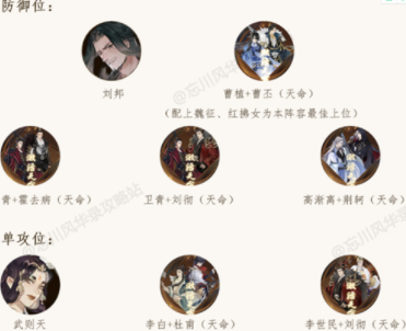 忘川风华录宝墟第八层怎么打?忘川风华录游戏中宝墟第八层很难打,所以下面小编就和大家分享一下宝墟第八层的通关阵容和打法技巧吧,详情如下。 忘川风华录宝墟第八层怎么过全玄级名士阵容:杨容姬(市隐套)+李秀宁(踏破套)+魏征(踏破套)+红拂女(踏破套)+狄青(市隐套) 防御位的上位名士【刘邦】,单攻位的上位角色【武则天】,天命组合推荐如下图所示。 在练度不够的情况下,名士很难抗住BOSS一下。因此不能带奶妈持续治疗慢慢磨,只能用各种负面效果延后其开大招回合。思路就是杨容姬开局送死,封印BOSS回能量,防止BOSS放大招。 然后防御位顶住BOSS的常规输出,安排三个单体攻击伤害高的角色,集火干掉BOSS就能过了。 总而言之,宝墟第八层的杨容姬是核心角色,必须练,无法替代。 |