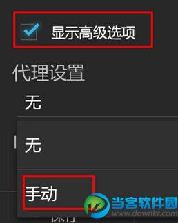 b)选择“显示高级选项”—代理设置—手动,填写与PC端相同的代理服务器即可。