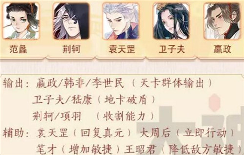 忘川风华录范蠡怎么样?厉害吗?“范蠡”在游戏中群体AOE输出比较优秀,在特定的阵容中表现亮眼,自身强度不错。下面带来忘川风华录范蠡人物图鉴全面介绍,希望对各位小伙伴们有所帮助。 忘川风华录范蠡图鉴【基础属性】 强度评级: T1 觉醒消耗真元:3 优质属性:生命、攻击、防御 特殊机制:自眩晕 推荐团队位:群体输出 天命组合技: 巴清,范蠡攻击时有15%的固定既率为巴清补充1颗真元。 【技能介绍】 【灵器搭配】 1、系统推荐: 2、攻击灵韵: 3、防御灵韵: 【卡牌阵容】 曹丕+甄姬+大周后+嬴政+韩非 【名士总结】 范蠡总体而言是偏向于辅助,[ 易伤]以及[道商]两个状态给队伍提供更高的输出,不管是pvp还是刷图的用处都是蛮大的,特别是配合高爆发、高输出卡。 |