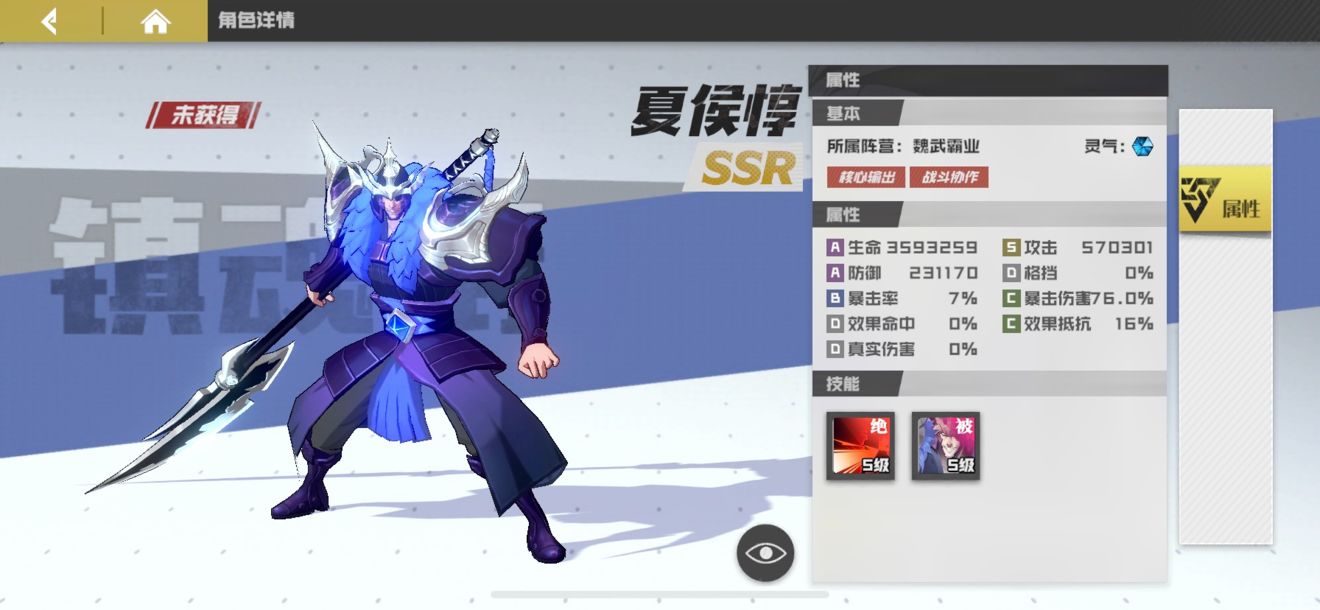 2.守护灵:夏侯惇(蓝色灵气)+守护灵:夏侯渊(红色灵气)