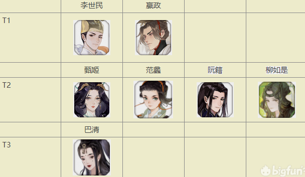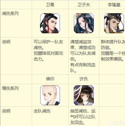 忘川风华录PVE阵容怎么搭配?忘川风华录PVE哪些角色比较强?接下来为大家分享忘川风华录PVE阵容搭配和角色选择攻略,一起来看看吧。 相关攻略:忘川风华录PVP阵容角色推荐一览 忘川风华录PVE阵容搭配攻略 1、阵容推荐 六选一嬴政开局,荆轲,袁天罡,甄姬/李淳风(或其他群体输出或单体输出),佛印。 六选一李世民开局,甄姬(或其他群体输出),刘彻/魏征/李秀宁/李淳风,袁天罡,佛印。 六选一刘彻,甄姬(或其他群体输出),李淳风,袁天罡,佛印。 六选一韩非(这个不是很推荐。),袁天罡,李淳风,佛印,李秀宁/霍去病(类似的单体输出) 六选一李白,李淳风,袁天罡,甄姬/李秀宁/魏征,佛印 六选一武则天,佛印,袁天罡,李淳风,李秀宁/魏征/甄姬。 有曹植的使君,可以考虑走追击队,搭配为曹植,魏征,红拂女,武则天/张良/佛印/杨玉环(四选二,或也可以带别的名士)。 以上阵容如果想打PVP的话,可以考虑用王昭君或者笔才(黄卡)来替代佛印(不包括追击队。) 2、角色排行 群攻 单攻 奶妈 控制 首选王昭君 |