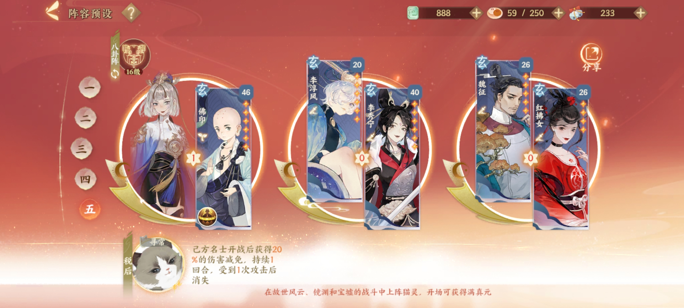 忘川风华录中pve玩法还是比较关键的,那么到底要怎么选择角色和搭配阵容呢?希望下面这篇忘川风华录PVE最强角色及阵容推荐能帮打到大家。 忘川风华录PVE最强角色及阵容推荐其中佛印有轻微的坦度,开局减伤,稳定的治疗,升星容易,可替换高配为杨玉环。 李淳风号称“小李世民”,大招能单体能群攻,升星后攻击格外可观,被动满技能最高可达50%增伤,花一张玄卡享受0.8张天卡的效果,不香吗???可替换高配为嬴政、李世民 李秀宁简直是玄卡中的战斗机,目前版本t0梯队单攻英雄(武则天也是t0梯队单攻英雄),升星后攻击不比天卡差,在这个配置中用来压制血量或者收尾都是可以的。当前版本没有可替代的 魏征最高30%协战追加伤害,大招伤害系数高,和李秀宁都可被称作平民战神,搭配李秀宁或者红拂女都是很好的,可替换高配为曹植 红拂女可以使其他卡增加协战,搭配使用效果更佳。 输出思路:魏征+红拂女追击打爆发,李秀宁+李淳风进行常规输出,佛印提供治疗和减伤 以上就是我们带给您的攻略,希望能对于您的游戏之路有所提升,谢谢观看! |