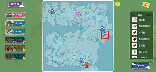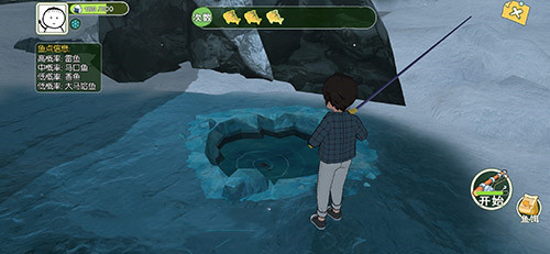 需要玩家穿过木林峡谷,然后就可以来到雾雪峰,钓鱼点位置如图所示,比较容易找到。需要玩家使用稿子凿冰层裂缝,随后使用鱼竿钓鱼即可。