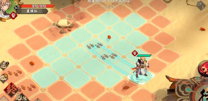 天地劫幽城再临脚印踪迹怎么过?天地劫幽城再临脚印踪迹通关方法是什么?小编为大家整理了详细的天地劫幽城再临脚印踪迹过关攻略,希望帮助大家通关。 天地劫幽城再临脚印踪迹攻略 第一回合 关卡开始,根据文案所示,我们直接往(脚印所向的方向)东方向走。 获得新的方向线索。 第二回合 第二回合,我们朝着线索的方向前进。 第三回合 时间来到第三回合,这里是固定的,直接走到火铜前一格,不要少走也不要多走,不然都不会触发。(em,也浪费时间) 第四回合~第九回合 时间来到第四回合,这个回合起,开始体现这个关卡的随意性,就是只要你保持在火铜旁边走,第九回合走到我上面倒数第三张图的位置就行。(咳咳,当然也可以直接按我的走) 第十回合 时间来到第十回合,我们直接从刚才的位置往右边走就行,触发封铃笙文案。 第十一回合 时间来到第十一回合,我们知道,终点是最上方的火铜的方向,所以我们向它靠近。 第十二回合 时间来到第十二回合,(根据我摸索的经验)不要踩在火铜格子上(不然不会触发流程),又(文案线索)指在“东”方向,按照冰璃的说法,我们要是走在下面的格子,那就是东北了,就不会触发流程,所以,直接走向最上方火铜的左边位置就可以了。 |