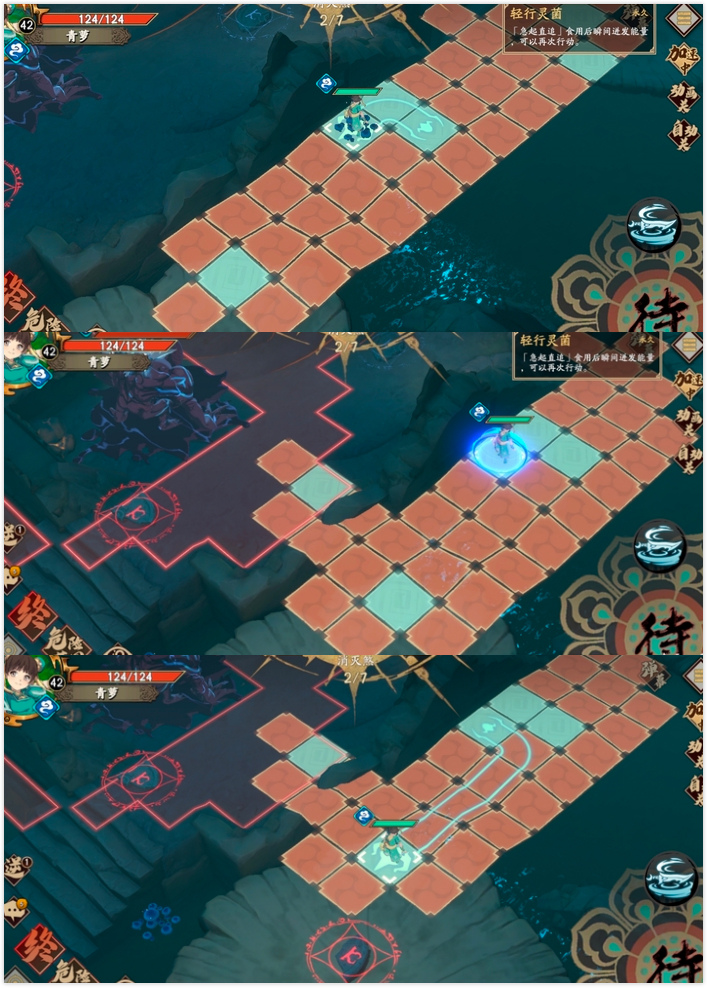 天地劫幽城再临阿秋来袭怎么打?阿秋来袭是天地劫幽城再临游戏中比较难的一个关卡,许多人不知道这一关怎么过,小编准备了详细的图文教程,手把手的教大家过阿秋来袭。 天地劫幽城再临阿秋来袭关卡攻略 关卡胜利条件:消灭煞 关卡概要 (1)共三煞,分别为红、绿,蓝;尉迟良和青萝通过触发法阵依次击杀。(2)其中红,蓝分别守着两个法阵,相对应的红蓝法阵(分布的位置)也较容易触发,我们优先触发红蓝法阵。(3)注意失败条件:我方任意一人阵亡,需要保持尉迟良和青萝的生存。 第一回合 青萝向左边红阵靠近,尉迟良直接触发绿阵。 第二回合 青萝触发蓝蘑菇buff并继续靠近红buff。 上一格虽然也能走,但是属于危险区域,暂时不走。 左边虽然有阵,但是目前没有良好的条件保证我们进去触发又能安全出来,暂时不触发。优先触发右方法阵,尉迟良向右方法阵靠近。 第三回合 青萝触发红阵。 尉迟良触发蘑菇buff并向蓝阵靠近 第四回合 第四回合,蓝绿二煞出现固定动作,无暇顾及我方青萝!我们趁势靠近,触发红阵,击杀第一个煞。 尉迟良触发蓝阵,刚好避开二煞攻击。 第五回合 蓝煞恢复状态,青萝距离另外的法阵较远,保证自己生存即可,走到安全的位置。 尉迟良继续向周边法阵靠近。 第六回合 尉迟良向蓝阵靠近,触发,击杀第二个煞。 em,青萝,划水就行。 第七回合 最后一个回合,尉迟良触发蘑菇buff,直接走向最后的绿阵,完成第三个煞的击杀。 |