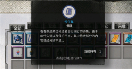 鬼谷八荒伶仃集奇遇怎么做?如何触发?游戏最近更新了一些新奇遇,其中“伶仃集”奇遇最为复杂,而且奖励也是最丰富。下面带来鬼谷八荒伶仃集奇遇触发攻略,希望对小伙伴们有所帮助。 鬼谷八荒伶仃集奇遇介绍触发方式:挖坟(盗墓),想要挖坟必须学会技能【天魂鬼契】,这种技能书要在城镇中购买并学习。随后前往任意区域,在地图中使用【堪舆】,当出现下图所示的提示,直接过去挖就行。 挖掘后会获得一本书籍【伶仃集】,将其放到身上(PS:不要放到建木中)跑图闲逛,会触发下图所示的奇遇选项。(PS:伶仃集被一名神秘男子夺走,并且嘲讽我们是盗墓之人) 1、夺回书籍 魔道值+20,并且重新获得伶仃集,魔音要求我们帮他杀个人。获得气运【万千魔念】,念力值上限减少100点。还有一个帮助神秘男子杀人的任务,就是不知道仇人位置在何处。 2、询问缘由 恼羞成怒:奖励和【夺回书籍】一样。 羞愧万分:寿命+10 一言不发:神秘男子许诺给我们一场造化,表示和他一同斩杀一个登仙。 选择【有何不敢】,获得万千魔念+伶仃集,还是杀人任务。 选择【拒绝】,啥都没有。 3、放弃书册 啥都没有 杀人任务详解:会在后续碰到一名【800万血量】的登仙境仇人,根本打不过,如果打赢估计奖励会很丰厚。 |