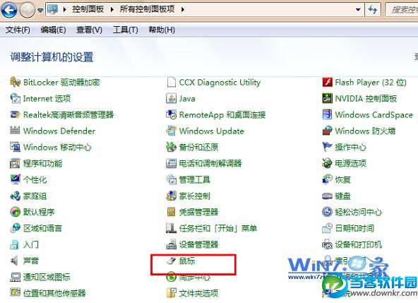 2、手动设置。打开开始菜单中的控制面板,然后找到并双击“鼠标”选项;