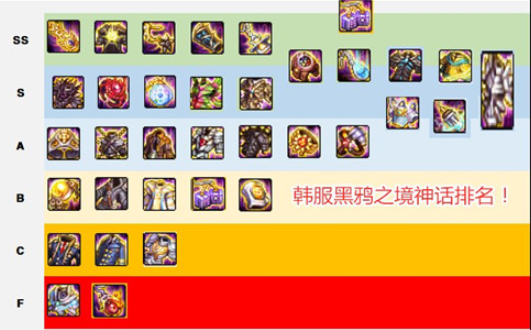 DNF黑鸦之境装备排名是什么?DNF游戏中国服终于上线黑鸦之境副本了,那么大家非常好奇的神话装备排名是什么呢?下面我们一起来看看黑鸦之境神话装备排名大全吧。 黑鸦之境神话装备排名DNF黑鸦之境神话榜!5大装备问鼎“SS”级 作为奥兹玛前传,黑鸦之境副本设计难度较高,地图很冗长,多个精英怪和BOSS。全图25分钟通关,只有5个复活币,仅一次重置技能机会。也就意味着,传统的“秒秒秒”已成历史,续航尤为关键。经过黑鸦之境磨炼,韩服神话榜来了,在“SS”级档位有5个,分别为军神的心之所念、逆转结局、无尽的探求、永恒地狱黑暗之印和时之魅影。 对于时之魅影这件神话,可冷却技能时间,黑鸦之境续航出色。其实,军神耳环挺给力的,虽说经历调整改版,但却雷打不动的问鼎榜首。而命运反抗者神话,摇到“6”之后强度,要比“SS”级高一点。不过,没有摇到“6”的情况下,只能在“B”级档次。 夹在两层的神话,根据搭配不同上升或下降,比如“S”级档次,灵宝、大幽魂上衣和时间回溯之针等,就是典型的例子。次元在韩服神话榜中,也已经“拉稀”,装备增幅改版后,300力稀释严重。天堂舞姬经过改版,伤害整体提升,续航又优秀,黑鸦之境同样出色! “F”级垫底两神话,奔流和削血首当其冲 这次黑鸦之境神话榜中,在“F”级排名的,很明显是垫底。英明循环之生命上衣,俗称奔流神话,并没有因冷却技能而崛起,伤害成关键。黑鸦之境有时间限制,很多人因伤害不够,25分钟超时没打完,只能遗憾失败!在兼顾续航的同时,伤害尤为重要,奔流上衣垫底也正常。在国服神话榜中,奔流神话上衣排名,同样是倒数的位置。 不过,对于“F”级排名中,削血神话跟奔流一样,都在垫底的层次,反而有些看不懂!削血神话词条改动,血管爆裂发动条件次数改动,由原来的“-50%”变为“-80%”,在黑鸦之境中起飞才对。毕竟冗长的地图,多个精英怪和BOSS,削血十分优秀。但却没有想到,削血神话拉稀,跟奔流在垫底“F”级! 总结 韩服黑鸦之境神话榜,只能当作参考,并不能代表全部。国服可不一样,特色道具加成,伤害提升一大截,偏向于爆发输出。不过,以黑鸦之境难度来看,未来续航才是主力,爆发“秒秒秒”的时代会过去。要知道,黑暗与之境是奥兹玛前传,设计的都这么艰难,“姜随机”先前吹嘘历届最难攻坚战,让我们觉得并非开玩笑。奥兹玛一旦现身,更加凸显续航的重要性! |