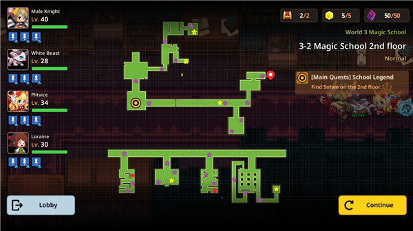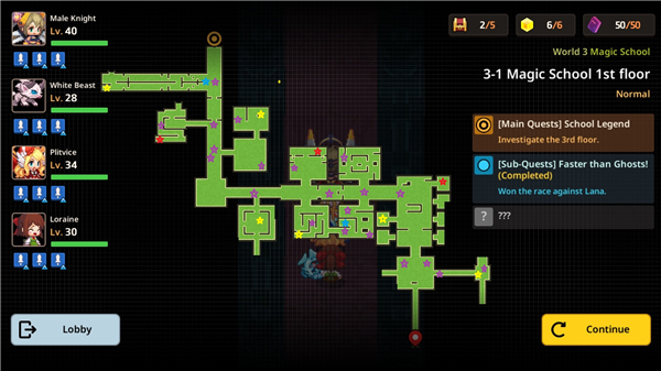 坎特伯雷公主与骑士唤醒冠军之剑的奇幻冒险世界第三章通关方法是什么?第三章中的关卡挑战小编会分享在下面,让玩家们快速的了解到世界3任务的玩法,还不清楚世界3任务怎么做的可以多看看下面的攻略完成所有的闯关。 坎特伯雷公主与骑士唤醒冠军之剑的奇幻冒险世界3攻略 ’图例:紫色星标——紫币;红色星标——宝箱/装备;黄色星标——星片;蓝色星标——支线地图/隐藏任务;黑色星标——黑色石板 3-1 幽灵挡路的地方,完成3-5支线完成之后再回来,可以获得劳拉日记3。 右上角害怕鬼的女孩子,等第三章通关后再来对话给钱和经验。钱和经验算2个宝箱。 上图站在这个位置不动,会有鬼吹灯,触发剧情获得装备。这里算1个宝箱 3-2 |