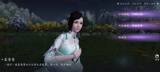天涯明月刀手游81主线双面怎么选择?天涯明月刀手游中全新81主线双面任务有三种结局可以解锁,那么下面小编就和大家分享一下81主线双面剧情选项攻略吧。 天涯明月刀手游81主线双面结局大全“七星隐龙”计划的背后,隐藏着小人物的血与泪。是惩罚,是原谅,还是放下过往,转问那旁观一切的“天上之人”,寻求最根本的答案? 天上白玉京,十二楼五城,“天上之人”白玉京的真实面目,彻底浮出水面。好奇,委屈,叛逆,坚定,一切的一切,皆在襄州的负阴抱阳之地,迎来最终的释放。 不管是少侠【不放她走,冷酷劝诫】还是【不放她走,替她求情】,这两个选项选择后,都有一个白玉京跳出来告诉少侠,袁青青是假死,然后以县主之仪下葬,再让少侠拆穿。 乍一看,真的像白玉京真的想让袁青青死。 可是,这两个选择的真正结果是,白玉京不告诉少侠所谓双面或者精神分裂或者所谓遗传疯血的情况。 只有【放她走】这一个选项,少侠才有机会得到更多应该知道的情报。 【不放她走,冷酷劝诫】【不放她走,替她求情】【放她走】不管哪个选项,袁青青都是必须存活。 而看似铁石心肠冷酷无情的白玉京,只有在少侠主动“原谅”“宽恕”后,才会告诉少侠更多,一旦少侠选择有仇报仇,白玉京看似满意或者不在意,但实际是什么都不说的。 |