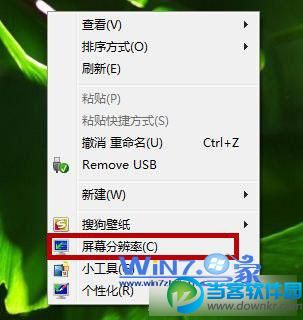 1、在电脑桌面的空白处鼠标右击选择“屏幕分辨率”选项;