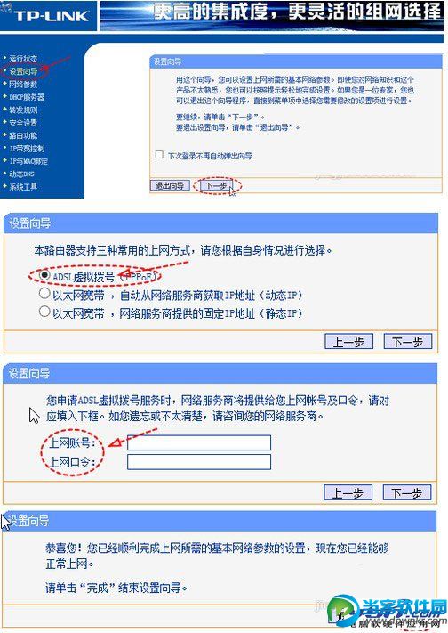 8.然后进入“http://192.168.1.1”,登录无线路由器的管理界面后,用“设置向导”进行进一步设置:
