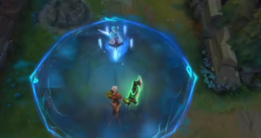 这位新英雄的伴生皮肤是太空律动,也就是接下来将要新上线的一个系列的皮肤,武器是使用一把大剪刀,并且可以看出技能带有很多的位移效果。