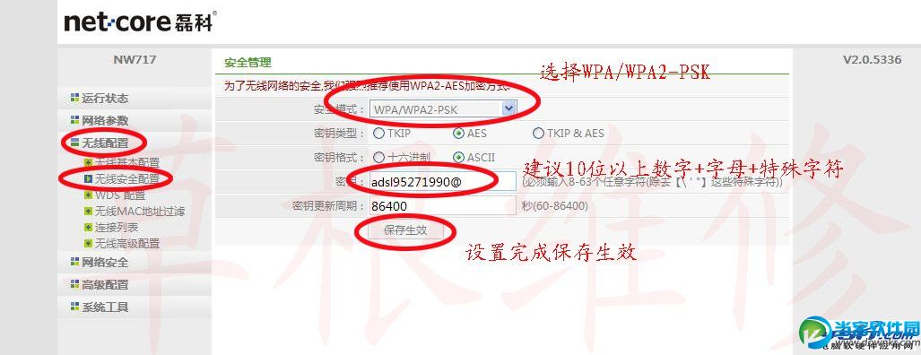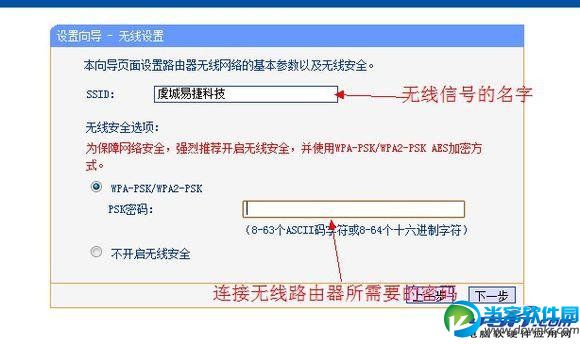 6.这里是设置无线路由的名字的密码。SSID是无线路由器的名称,下面就是连接无线路由器所需要的密码了。