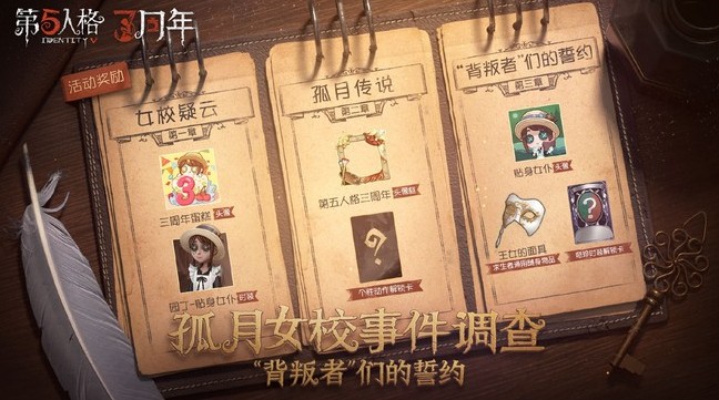 第五人格孤月女校调查怎么通关?新上线的活动关卡,现在小编给大家说下游戏中孤月女校事件调查任务完成技巧攻略。 孤月女校调查攻略详情 一、活动时间 2021年4月1日开始 二、活动奖励 第一章女校疑云: 园丁独特时装-贴身女仆、头像-三周年蛋糕 第二章孤月传说: 头像框-第五人格三周年、个性动作解锁卡 第三章背叛者们的誓约: 头像-贴身女仆、求生者通用随身物品-王女的面具、奇珍时装解锁卡 第五人格孤月女校调查攻略 孤月女校全章节通关奖励总汇[多图]图片2 三、活动介绍 侦探们将跟随真相小姐一同前往“孤月女校”,探寻其中潜藏的秘密。故事一共分为三个章节:第一章女校疑云、第二章孤月传说和第三章背叛者们的誓约。通过与不同角色的对话,在不同场景的探索,你们将收集到关键线索,一步步接近真相。 四、其他活动 1.全角色限免 4月8日维护后-4月21日23:59:59三周年庆期间 2.登录奖励 周年献礼准备就绪!4月1日-4月28日期间,每位侦探将在首次登录的时候收到一份内含周年庆精华*10的赠礼。记得及时上线领取呀~祝大家三周年生日月都能金光满满! 3.三周年投票 投票已经结束,返场皮肤: 医生奇珍时装-往昔&医生奇珍随身物品-誓言 红蝶稀世时装-白无垢&红蝶奇珍随身物品-焚樱 红夫人奇珍时装-最后一舞&红夫人奇珍随身物品-毒蛇手杖 红夫人稀世时装-贝拉夫人&红夫人稀世随身物品-完美人偶 佣兵稀世时装-柴郡猫&佣兵稀世随身物品-猫尾 4.噩梦逐影复刻 复刻时间:2021年3月25日-2021年5月5日 5.充值返利 4月8日维护后-4月28日23:59:59 侦探们在次期间充值回声即可获得包含第十六赛季精华3(即:孤月传说主题精华)、稀世时装体验卡、奇珍时装体验卡、线索等在内的奖励。掰着手指算了算,充值满18888回声(单位是回声,不是元嗷~)可累计获得37个第十六赛季精华3。 |