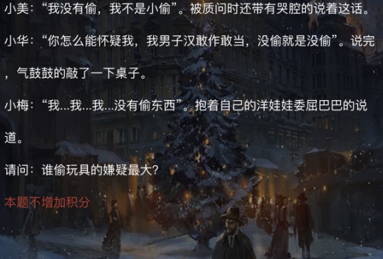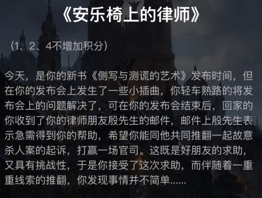 犯罪大师3.30每日挑战答案大全。犯罪大师发布了3月30日的每日挑战任务,今天的任务难度较高,许多人都没答上来,以下是犯罪大师3.30每日挑战答案大全。 犯罪大师3.30每日挑战答案大全: 第一关:偷玩具的人是?答案:小华 第二关:女士有几处不合理?答案:5处 第三关:没有青蛙参加的梅花小画家答案:xiaogou 第四关:平面图中的矛盾点答案:窗户 第五关:请问王明与张肖的口供矛盾处在哪?答案:278 第六关:线索序号顺序为?答案:cefijk 今天,是你的新书《侧写与测谎的艺术》发布时间,但在你的发布会上发生了一些小插曲,你轻车熟路的将发布会上的问题解决了,可在你的发布会结束后,回家的你收到了你的律师朋友殷先生的邮件,邮件上殷先生表示急需得到你的帮助,希望你能同他共同推翻一起故意杀人案的起诉,打赢一场官司。这既是好朋友的求助,又具有挑战性,于是你接受了这次求助,而伴随着一重重线索的推翻,你发现事情并不简单...... 你是如何从各位嫌疑人的话语中判断出谁是犯人的呢?欢迎讨论。 |