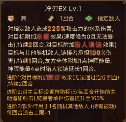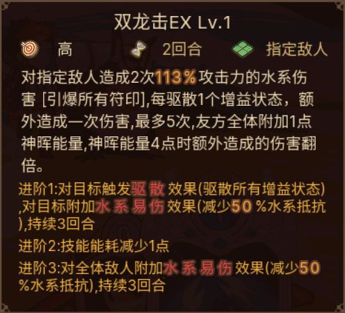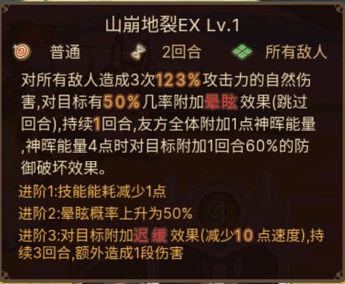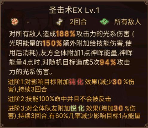 元素方尖方尖塔S4赛季EX技能有哪些?元素方尖今日开启了方尖塔S4赛季,推出了很多新的EX技能,很多玩家还不知道具体有哪些,下面就为大家带来元素方尖方尖塔S4赛季新EX技能效果大全。 元素方尖方尖塔S4赛季新EX技能效果大全新的EX技能 剑士:山崩地裂EX 需求羁绊:守护者 元素师:火球术EX 需求羁绊:元素领主 修女:圣击术EX 需求羁绊:植物 刺客:双龙击EX 需求羁绊:暗杀者 调整后的旧EX技能 狂战士:孤注一掷EX 需求羁绊:持斧者 新增:友方全体附加1点神晖能量,神晖能量4点时对目标附加晕眩效果,持续1回合 游侠:冷刃EX 需求羁绊:弓箭手 新增:友方全体附加1点神晖能量,神晖能量4点时猎人锁链延长1回合 巫术师:暗影爆破EX 需求羁绊:巫师 新增:友方全体附加1点神晖能量,神晖能量4点时减少目标30点命中,持续3回合 圣职者:圣光护盾EX 需求羁绊:灾厄 新增:友方全体附加1点神晖能量,神晖能量4点时提升40%暗系抗性,持续3回合 |