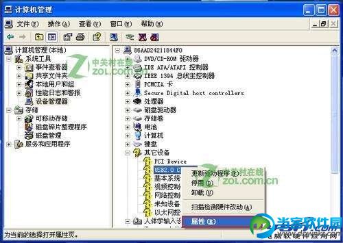 2、然后在[设备管理器]中,[USB2.0 Camera](注意:型号不同的笔记本中摄像头设备的名字可能会有异同),右键点击设备名称,在出现的菜单中选择「属性」;