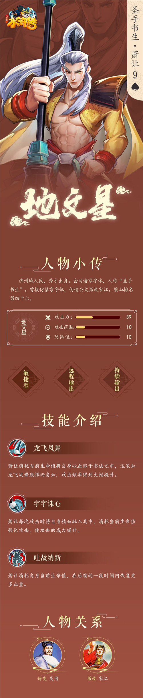 萧让的好友为智多星-吴用,并且解救过梁山首领及时雨-宋江